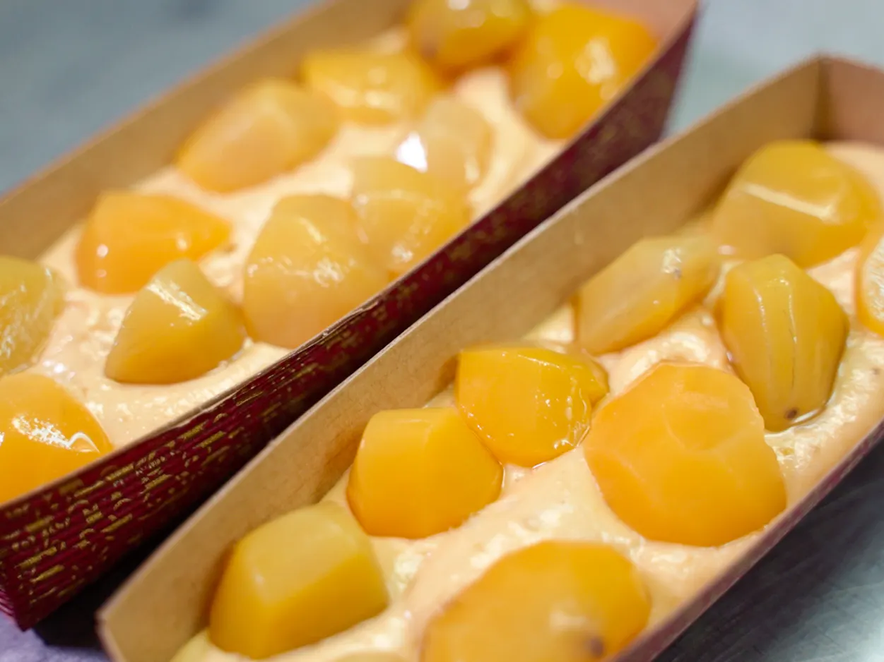 マロン堂のパウンドケーキは、シンプルな原料とたっぷりの栗ペーストを合わせて作った、まさに栗をそのまま食べているかのような生地に仕上げております。さらに、表面にはたっぷりの栗を乗せて、栗スイーツをわかりやすく表現させて頂きました!