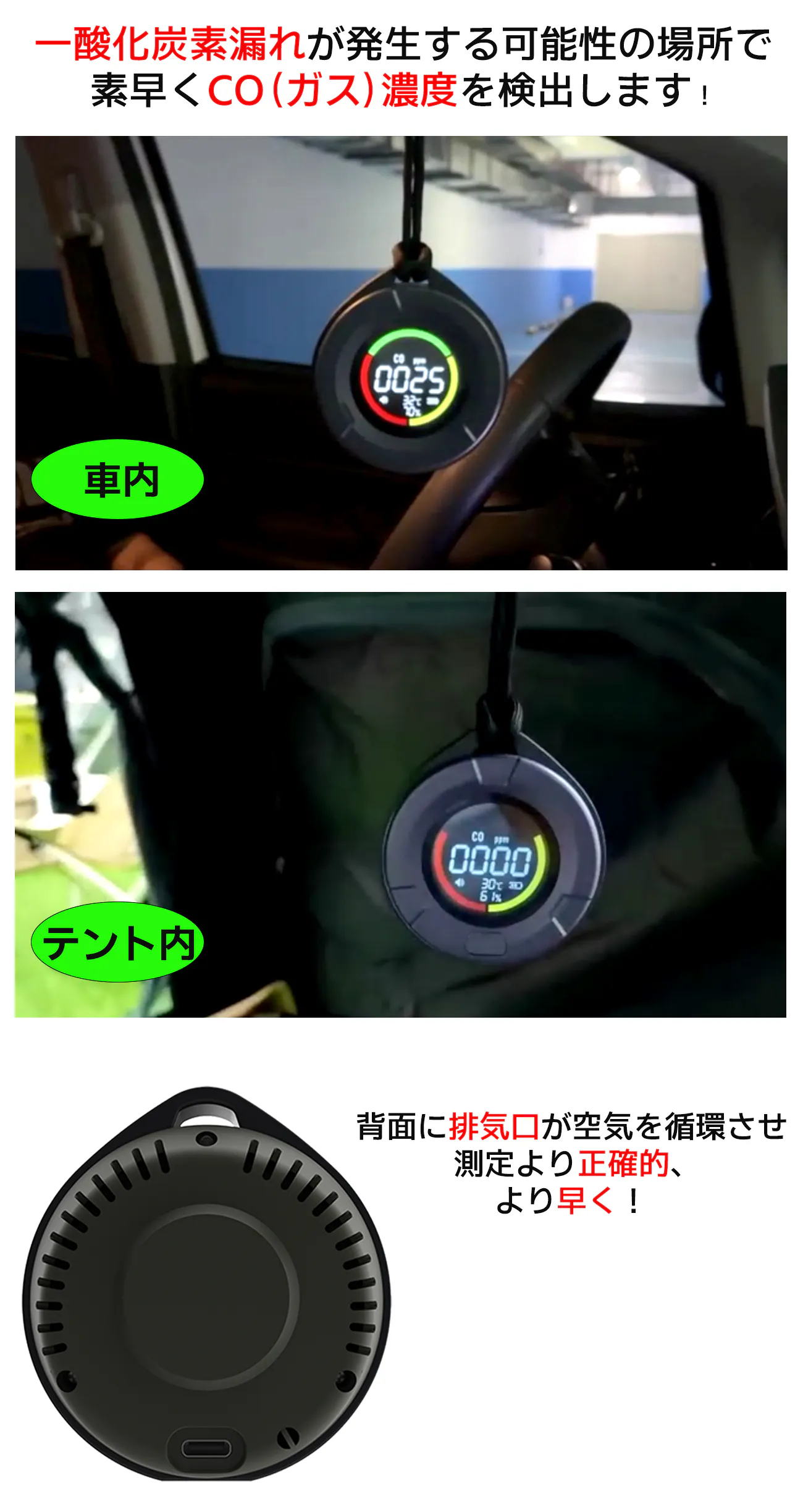 いつでも、どこでも、安全安心な空間作り、CO中毒による事故を防止することができます!