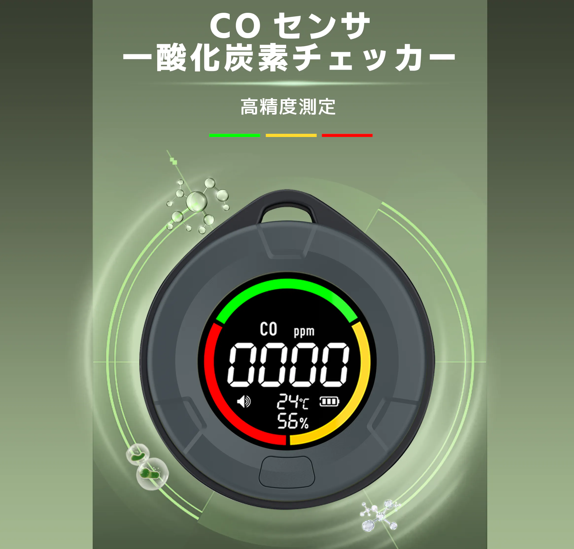 COセンサ一酸化炭素チェッカーはあらゆる場所の空気質を見える化、一酸化炭素は無色・無臭のため、ばく露したことに気がつきにくいため、ガスなど検知目的で必要な防災グッズになります。