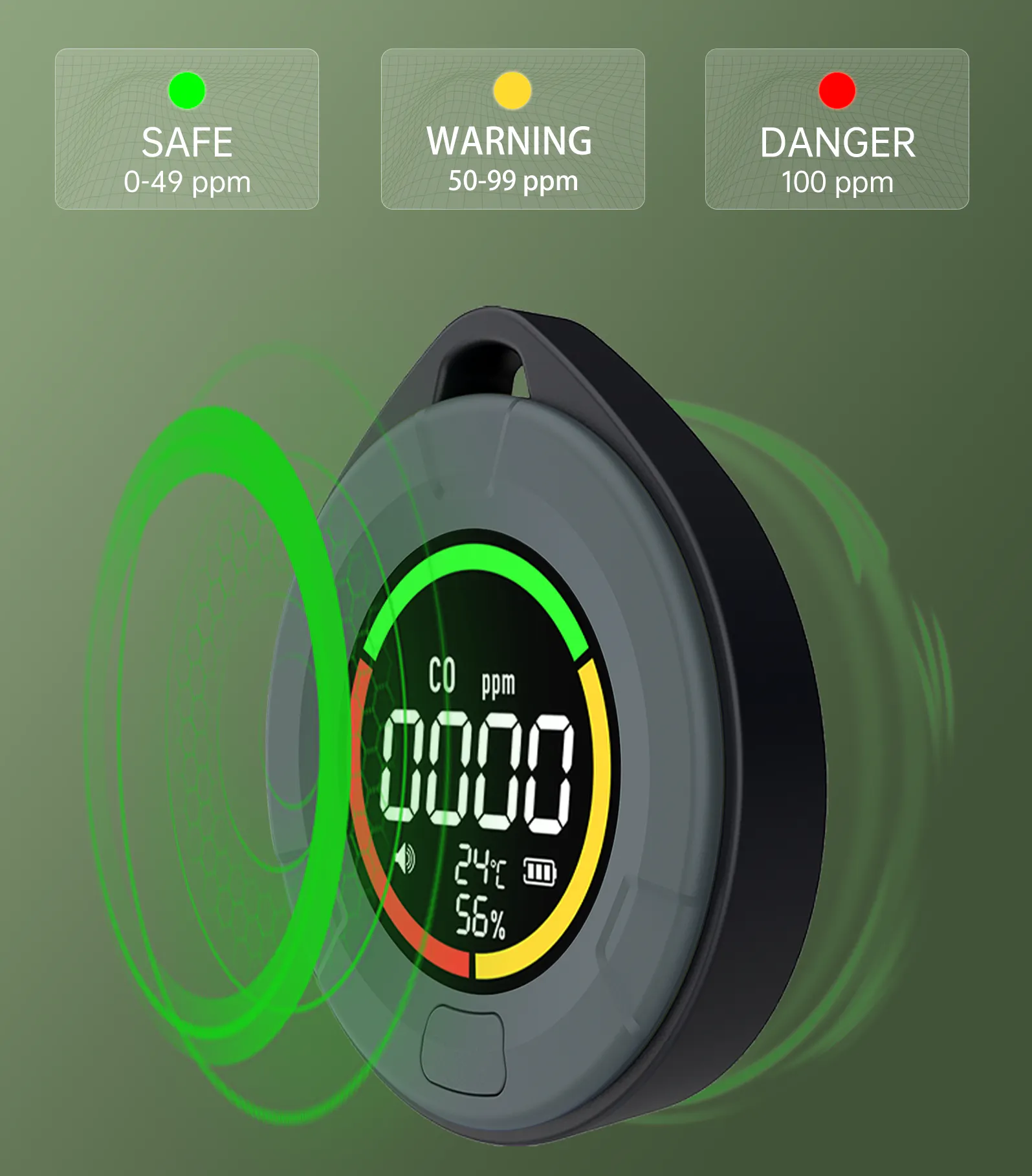 アラームのCO濃度範囲設定も可能で。柔軟に対応、周囲の環境安全を確実に把握できます。
