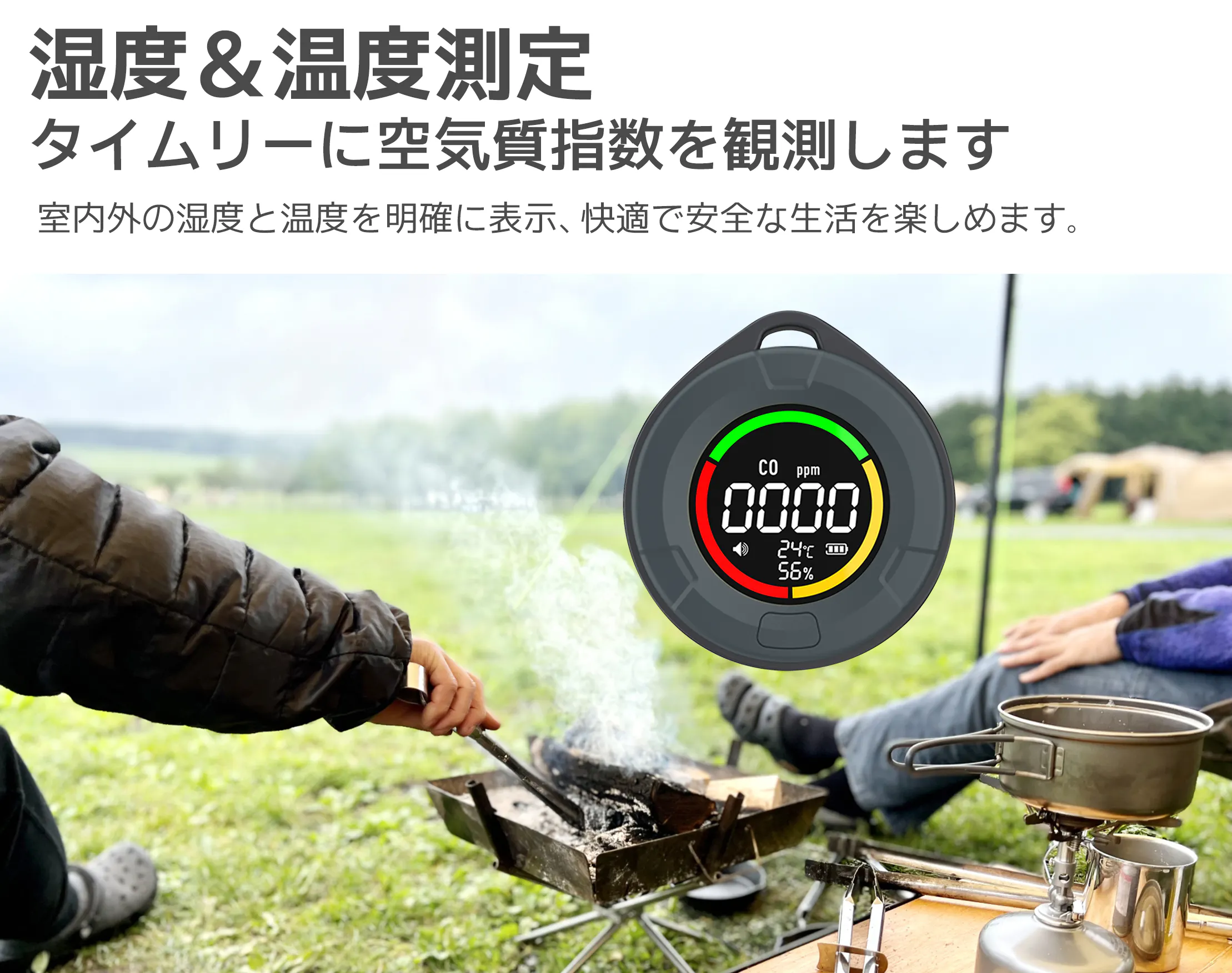CO2/温度/湿度検出、 キャンプ、家庭、車内など、日常の色々なシーンで使えます。また学校、オフィス、農業栽培、孵化培養、生産倉庫、原料加工などの場面にもよく合います!