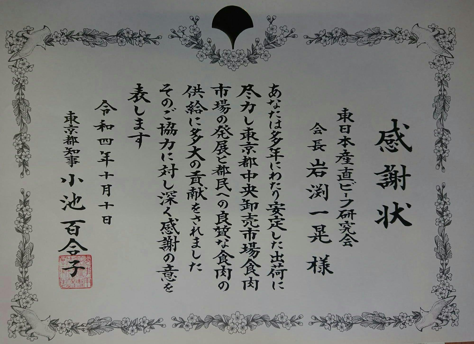 (受賞歴) 東京都知事からも感謝状を頂きました