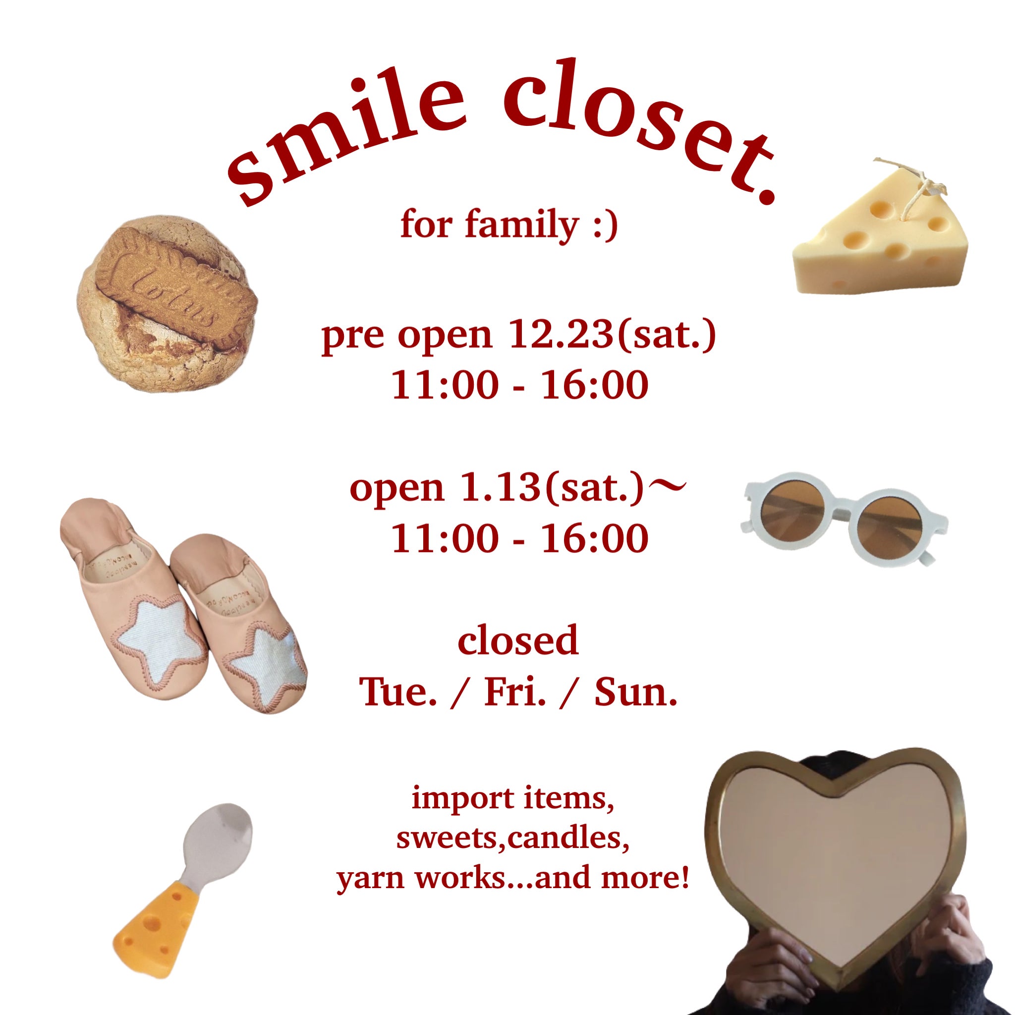 2023/12/27 00:00smile closet. おうちshop皆様のお力添えにより、ついにpre openの日を迎えることが出来ました!延期に次ぐ延期、そして急な告知にも関わらず、ありがたいことに駐車場がいっぱいになってしまった時間帯もありました(т-т)Xmas前&年末の忙しい時に駆けつけてくださり、本当に感謝の気持ちでいっぱいです。。(右側がリターンの花束となります★)pre openの日は2日前までペンキを塗っていたというバタバタ状態でお迎えしてしまいましたが、1/13のopen日にはもう少し準備を整えてグレードアップしようと思いますので、皆さまのご都合の良い日に遊びに来てくださると嬉しいです★(定休日:火曜・金曜・日曜)定休日でも気まぐれで午後から、など開けたりすることもあると思いますので、ご参考までに♡!自分のお店を持てたらしたいなぁと思っていたことをあれこれ計画しておりますので、ぜひ参加いただけたら嬉しいです★皆さまにお会い出来るのをとてもとても楽しみにしています☺︎ もっと見る