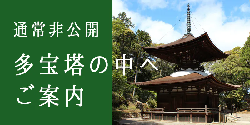 専門の職員が、通常非公開の多宝塔(国宝)の中へご案内いたします。ご本尊である大日如来坐像(快慶作、重要文化財)を間近でお参りいただけるほか、外からはなかなか見られない四天柱絵(重要文化財)をご覧いただけます。 日程につきましては、後日ご相談させていただきます。※1口1名様でお願いいたします