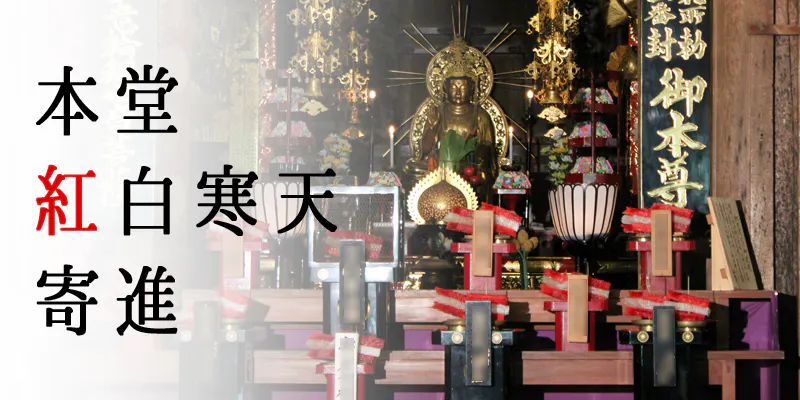 本堂に特別にお供えされる紅白寒天、そこに1年間お名前を表示いたします。※ 1名様、1年間有効、1口1名様でお願いいたします