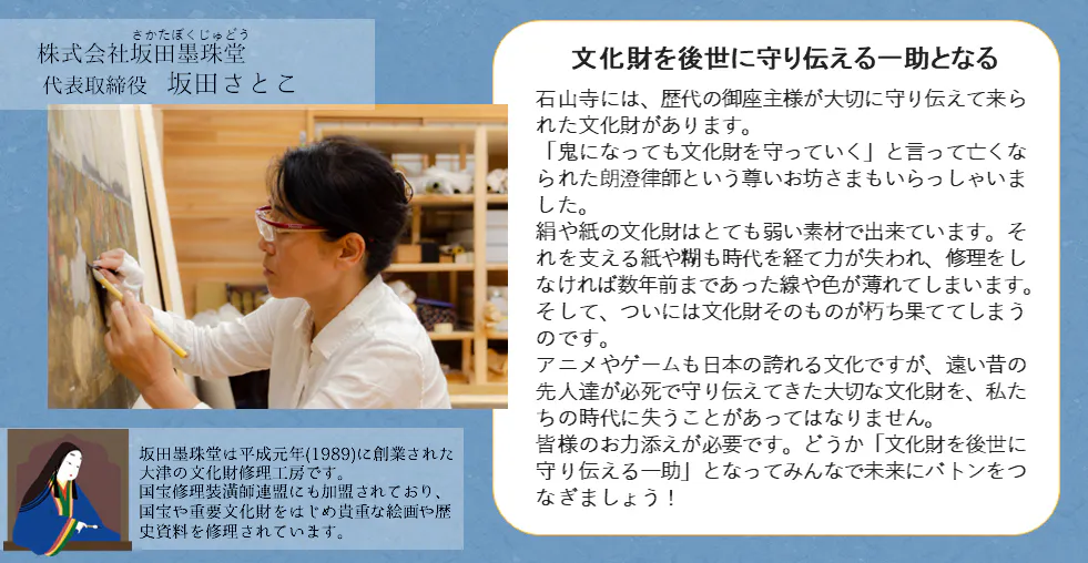 文化財を通して、多くの方に石山寺とご縁を結んでいただけることを祈っております。