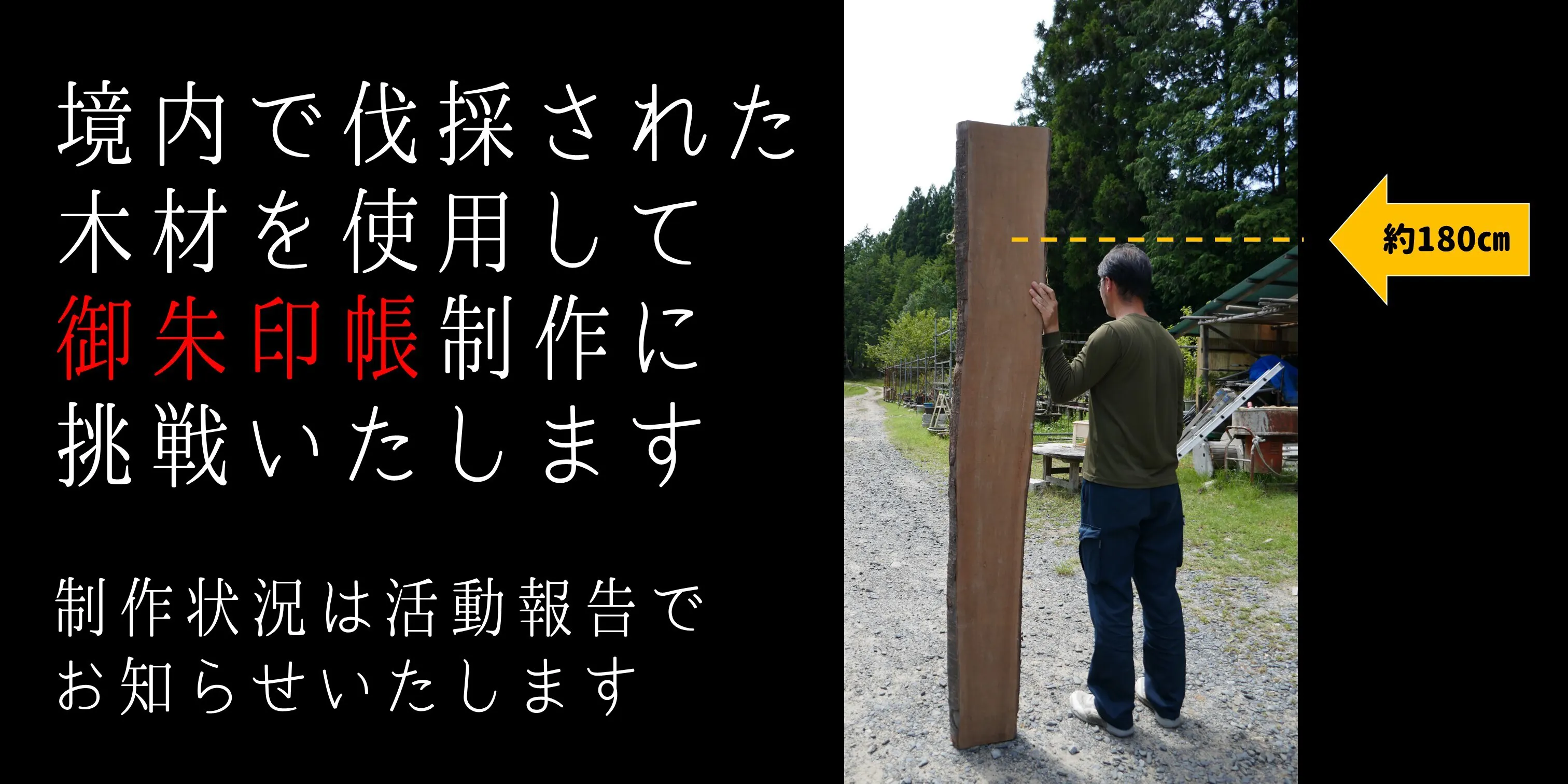 地元の会社である藤沢製本さんご協力のもと、 石山寺境内で伐採され、何年も乾燥させた木材を使用した御朱印帳の制作に挑戦します。制作過程は活動報告にてお知らせします。楽しみにお待ちください。