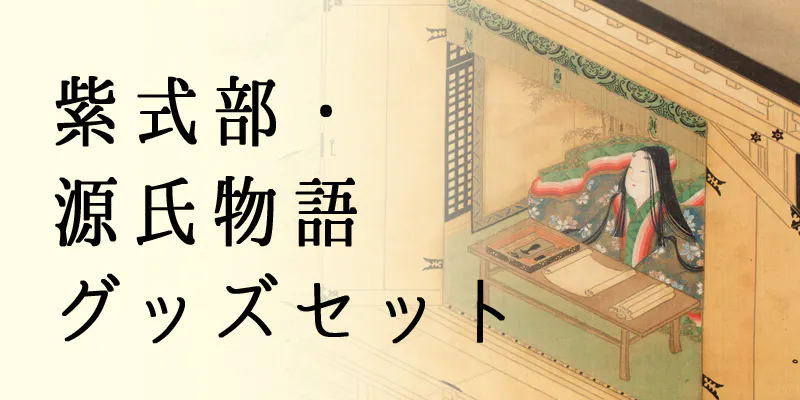 石山寺が所蔵する紫式部図や源氏物語絵を使用したノートやクリアファイルのセットです。