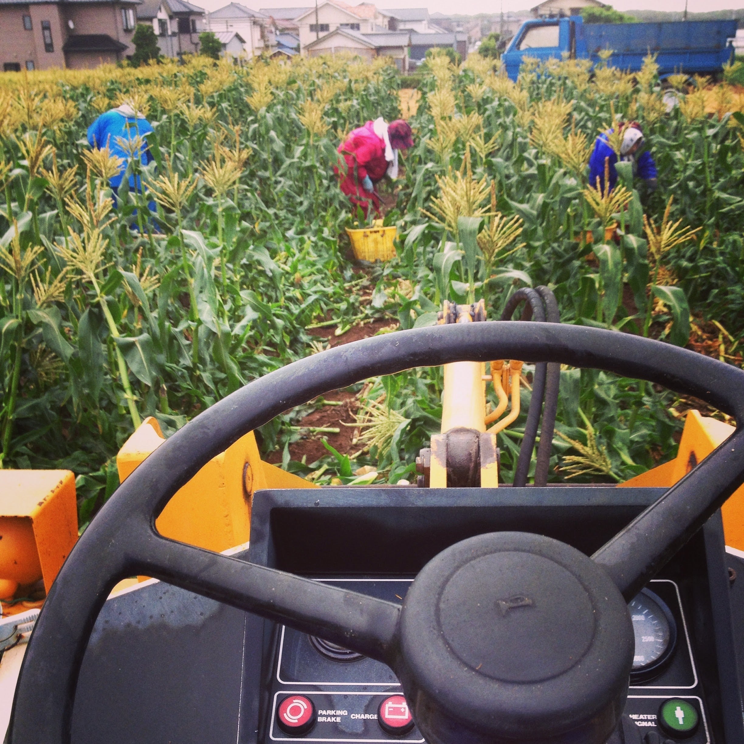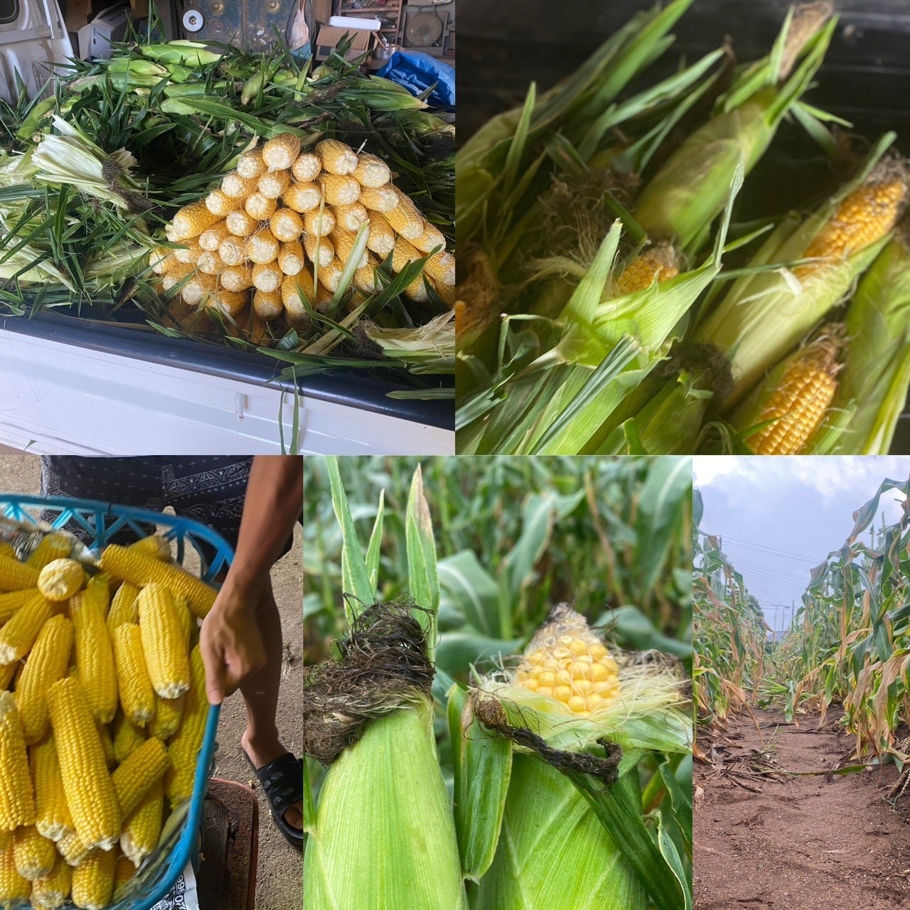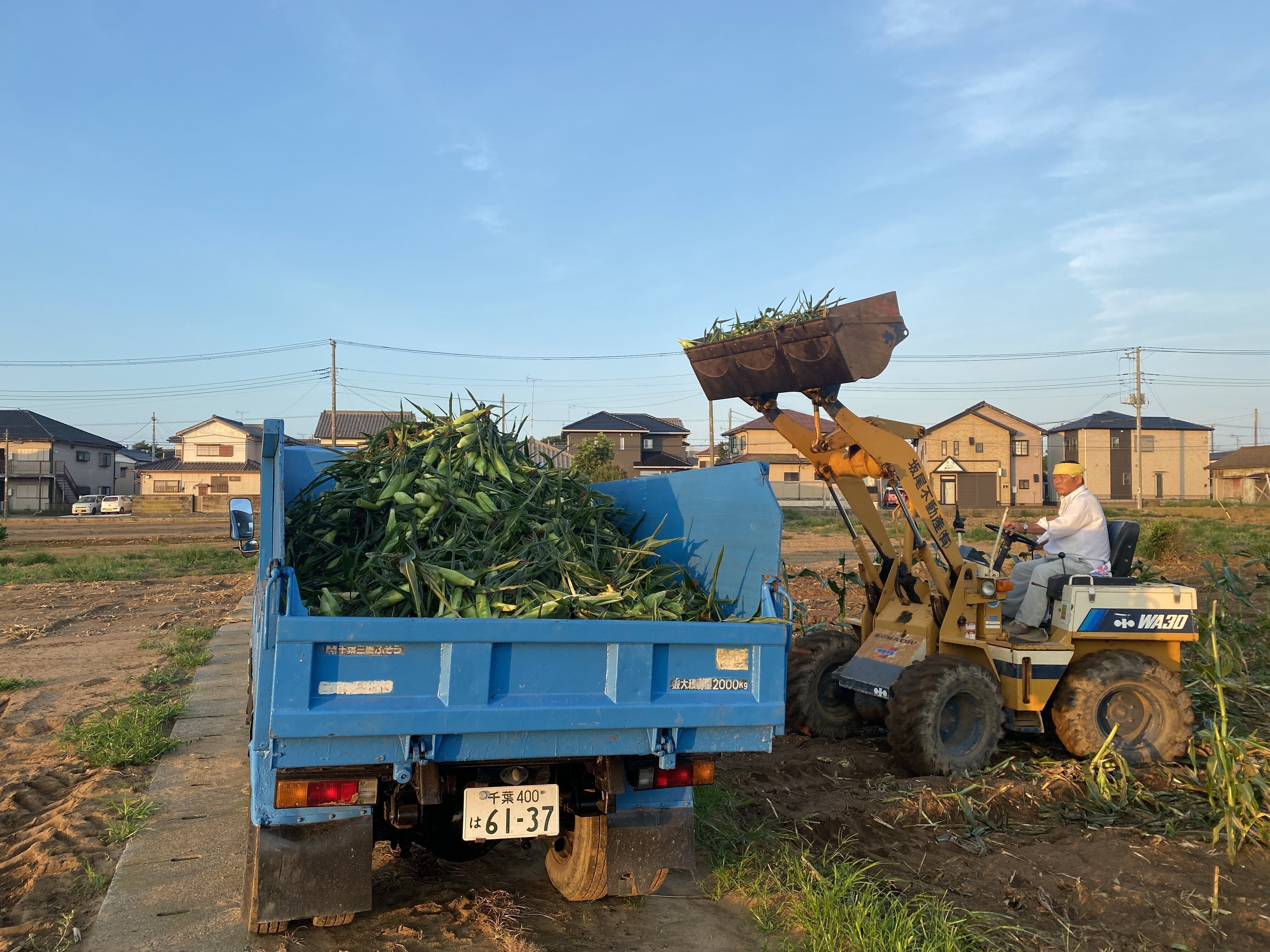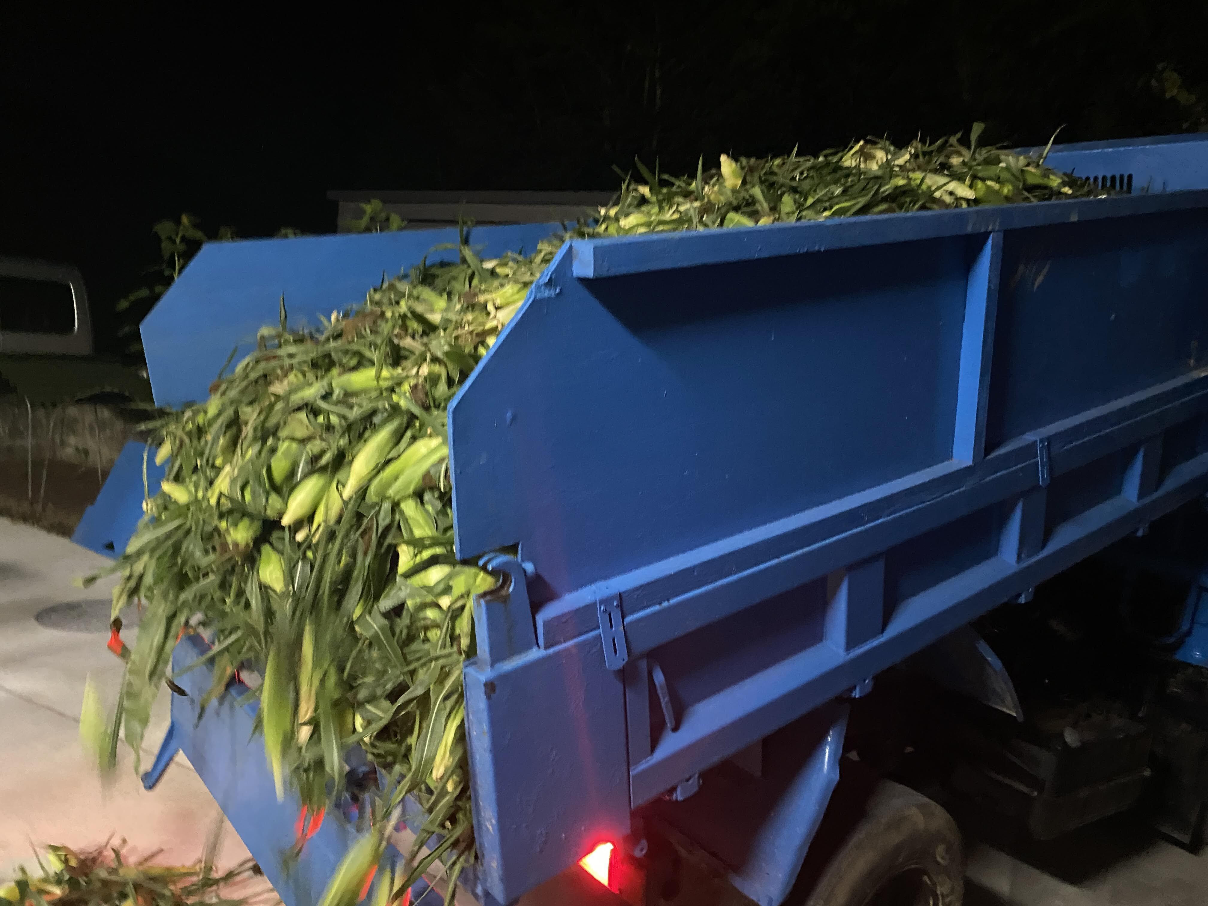 ストックしていた乾燥のコーンや乾燥の芯なども積み込み2トンダンプ(エアコンなし&窓不具合)