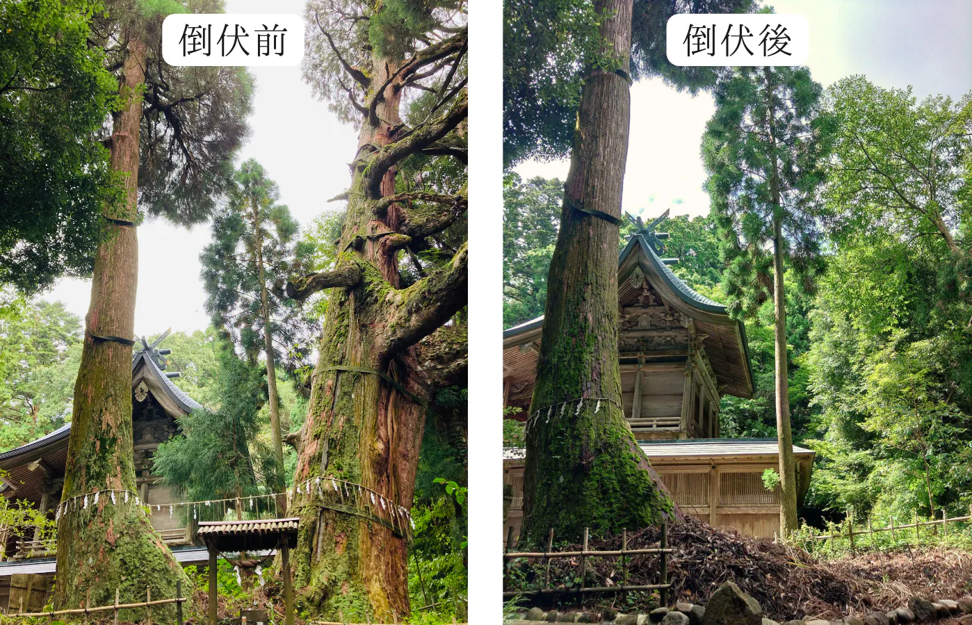 同方向の風除けがなくなったこともあり社殿への倒伏を危惧する声が多く寄せられました。