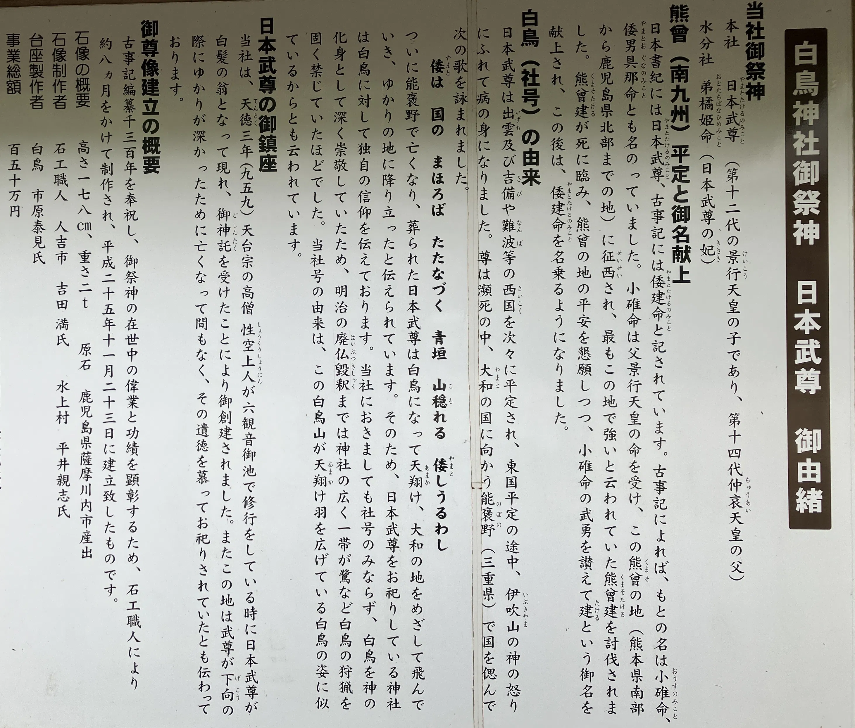 初めに白鳥神社の由緒などについてご紹介いたします。