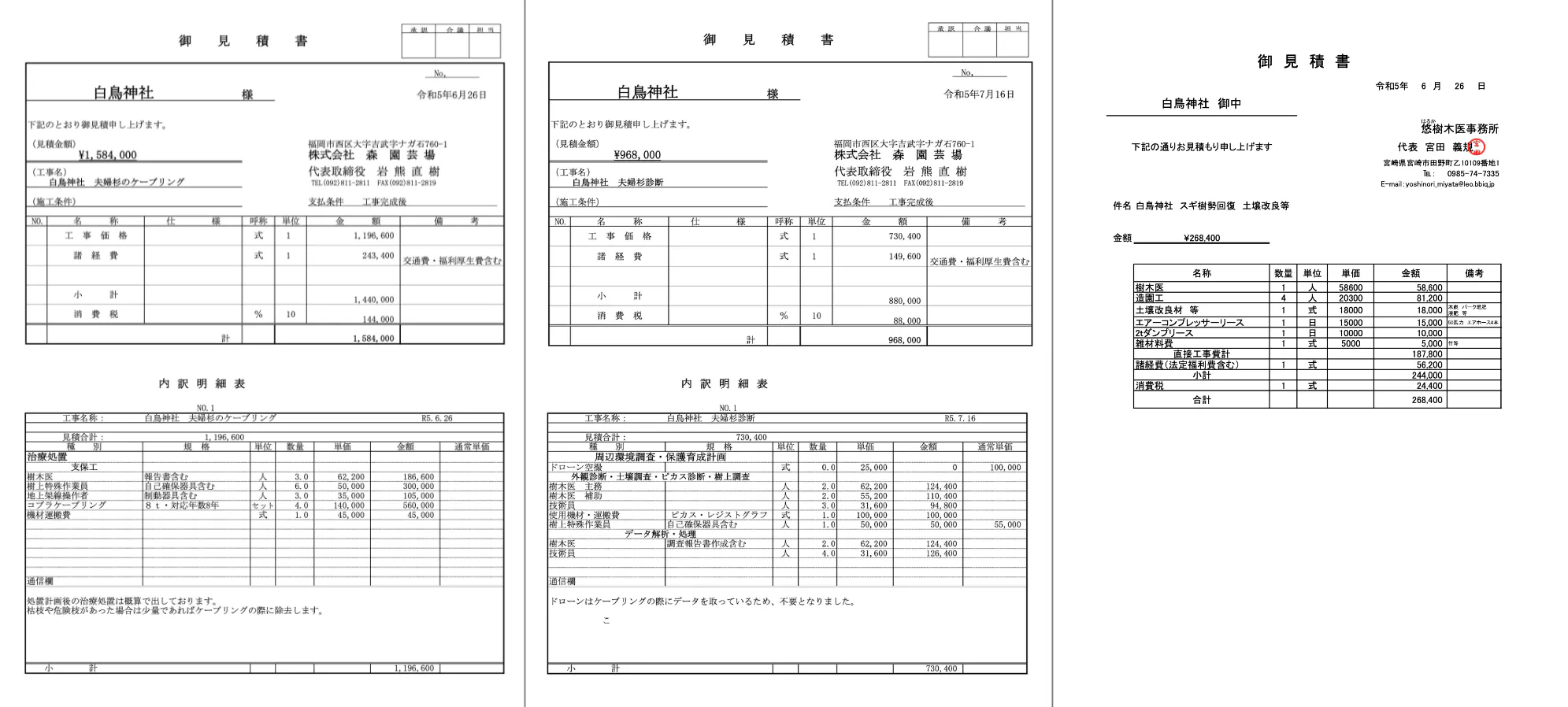 次に今回の御神木の保護にかかる費用の見積書になります。