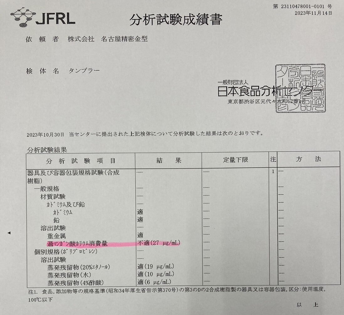 タンブラーの形はしていても「食器」として使うためには、全項目で「適」が必要です。