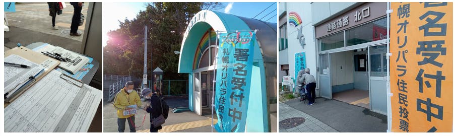 星置駅周辺で署名2時間のお願い。天気に合わせて場所変えたり、3ヶ所に分散してみたり…