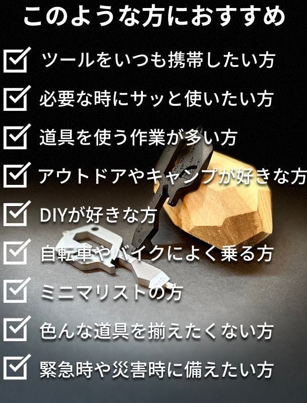 日常生活だけじゃなくアウトドアやDIY、緊急時など様々なシチュエーションで活躍します!