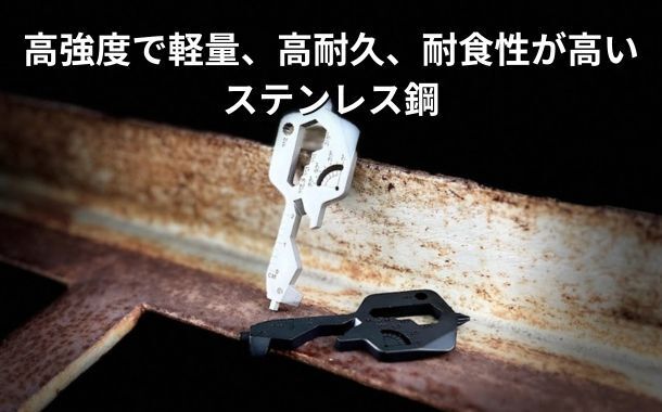 A:ステンレス鋼になります。強度が高く耐久性、耐食性に優れた素材です。錆びに強い素材ですが濡れた場合などは水分を拭き取って保管してください。
