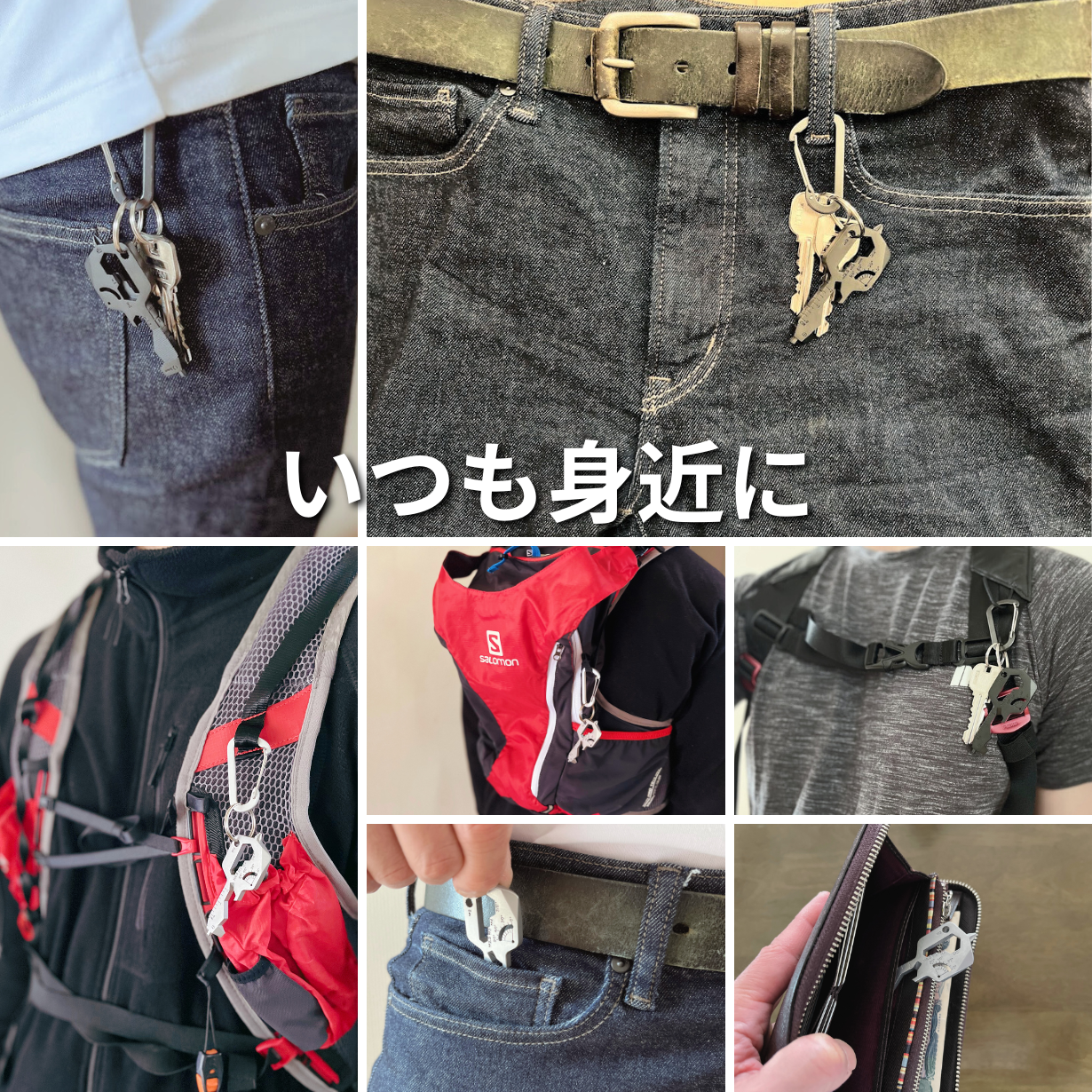 キーホルダーやカラビナなどに取り付けてベルトループやバックに引っ掛けたり、財布やポケットに入れて、必要な時にすばやく使えるようにすると大変便利です。