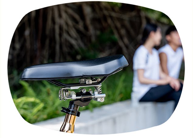 シートクッションが動き過ぎてペダリング効率が悪くならないよう、また、自転車の外観を妨げることがないよう構造、体積、重量、外観をアップデートしてきました。