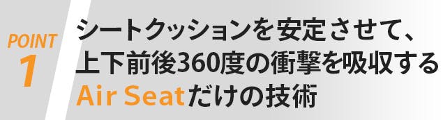 A 走行の安定性にも配慮しながら、シートクッションの上下・左右・前後360度の全範囲の衝撃を吸収するように設計されています。また、既に使用されているみなさまからも高評価をいただいています。