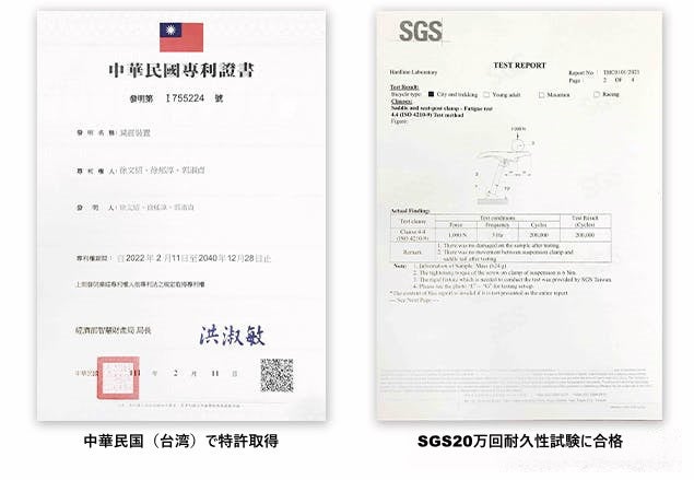 この技術は、中華民国(台湾)で「衝撃吸収装置」として特許を取得し、世界的な技術評価基準となっているSGSによる20万回の耐久性の試験にも合格しています。