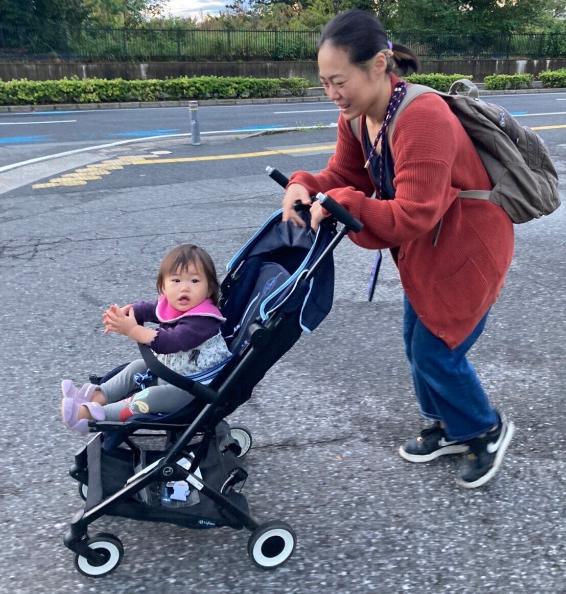 次女をベビーカーに乗せ保育園へ向かう途中