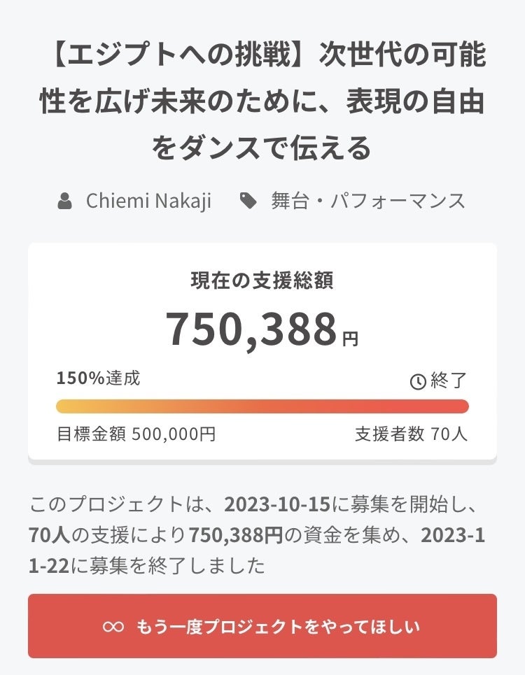 ご支援いただいた70人の皆さま、心より感謝申し上げます。