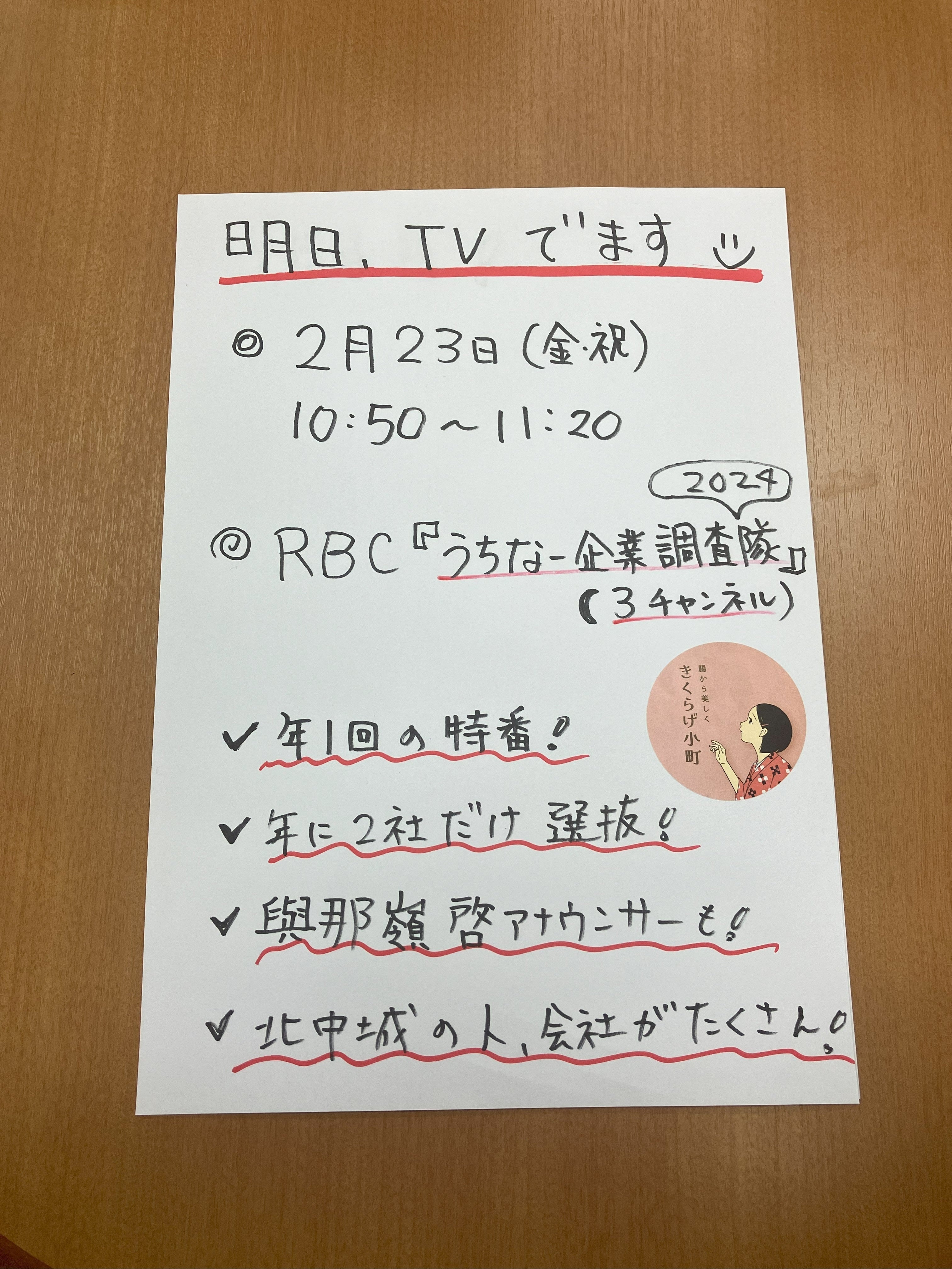 まさか、番宣できるとは思いませんでしたが、明日、きくらげ小町がテレビに出ます!