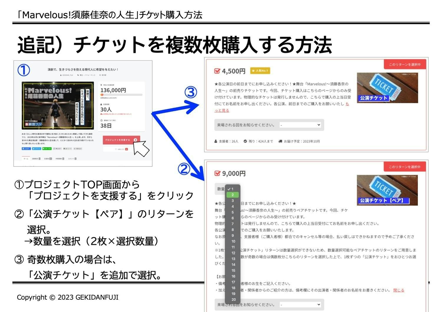 この「公演チケット【ペア】」(9,000円)を偶数枚分選択した上で、