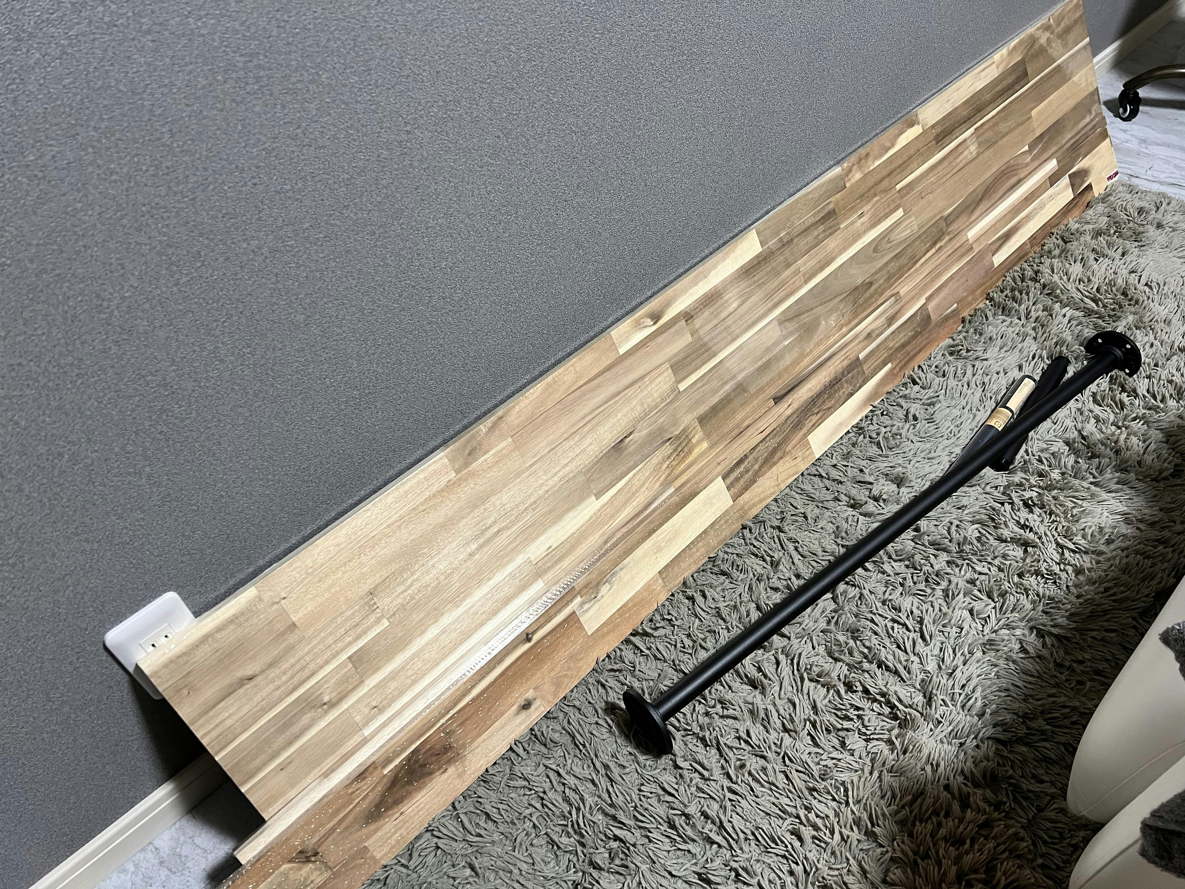 2023/10/18 21:43アカシア集成材で壁に取り付けて棚にしてゆきます!グレーと白にピッタリなカラーで楽しみですね♪ もっと見る