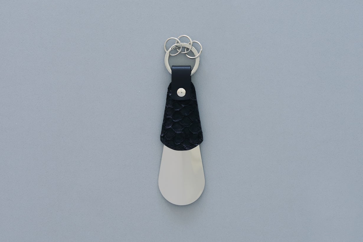 高知県で獲れた「マダイ」のフィッシュレザーを使用した小ぶりのシューホーンは、キーホルダーとしても使用でき、靴を履いて「出発」する際に欠かせなくなりそう。