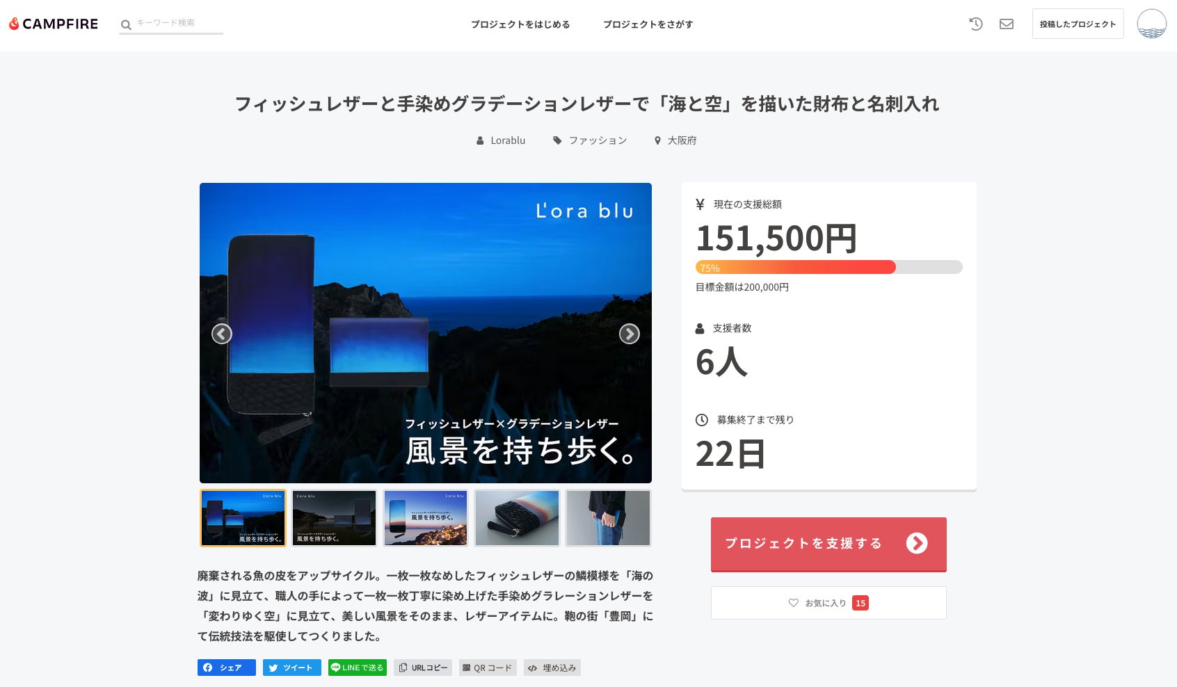 この度は、L'ora blu(ローラブルー)のCAMPFIRE第一弾プロジェクト「フィッシュレザーと手染めグラデーションレザーで『海と空』を描いた財布と名刺入れ」に関心を寄せていただき、またご支援いただき、ありがとうございます。