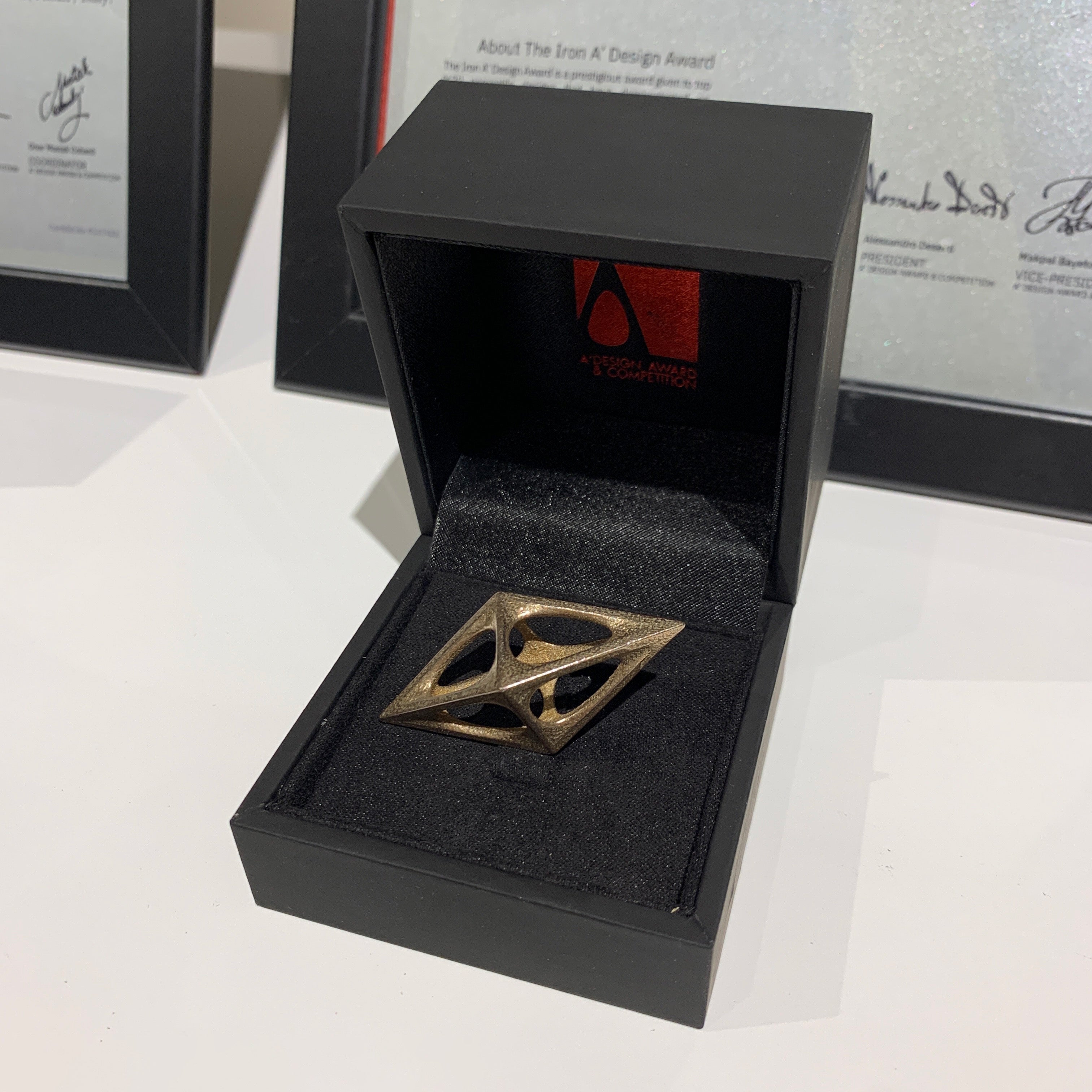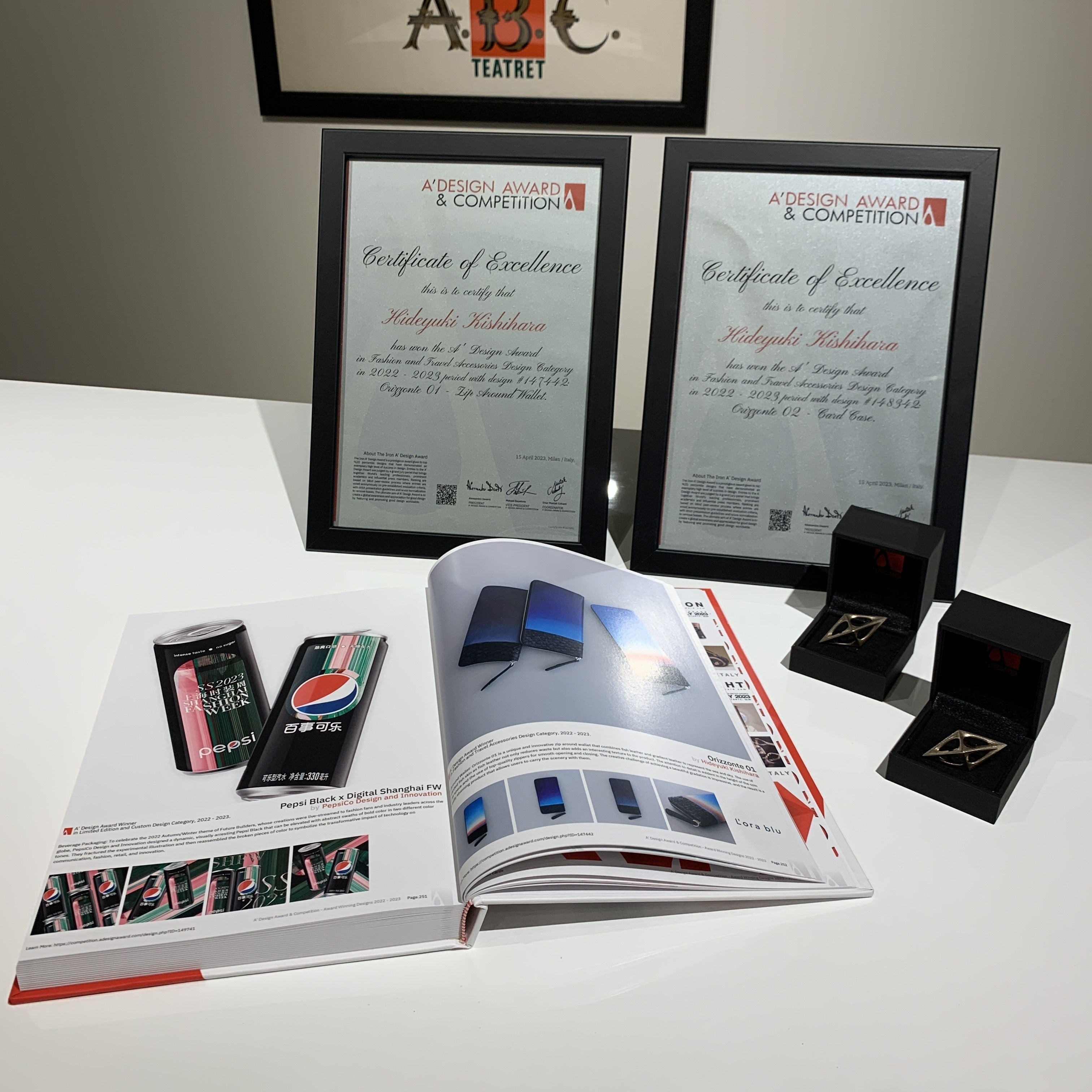 プロジェクトページでもご紹介しております、イタリアで行われた国際的デザインアワード「A' Design Award & Competition 2022-2023」のトロフィーが届きました。当プロジェクトの「長財布」「名刺入れ」が受賞アイテムです。