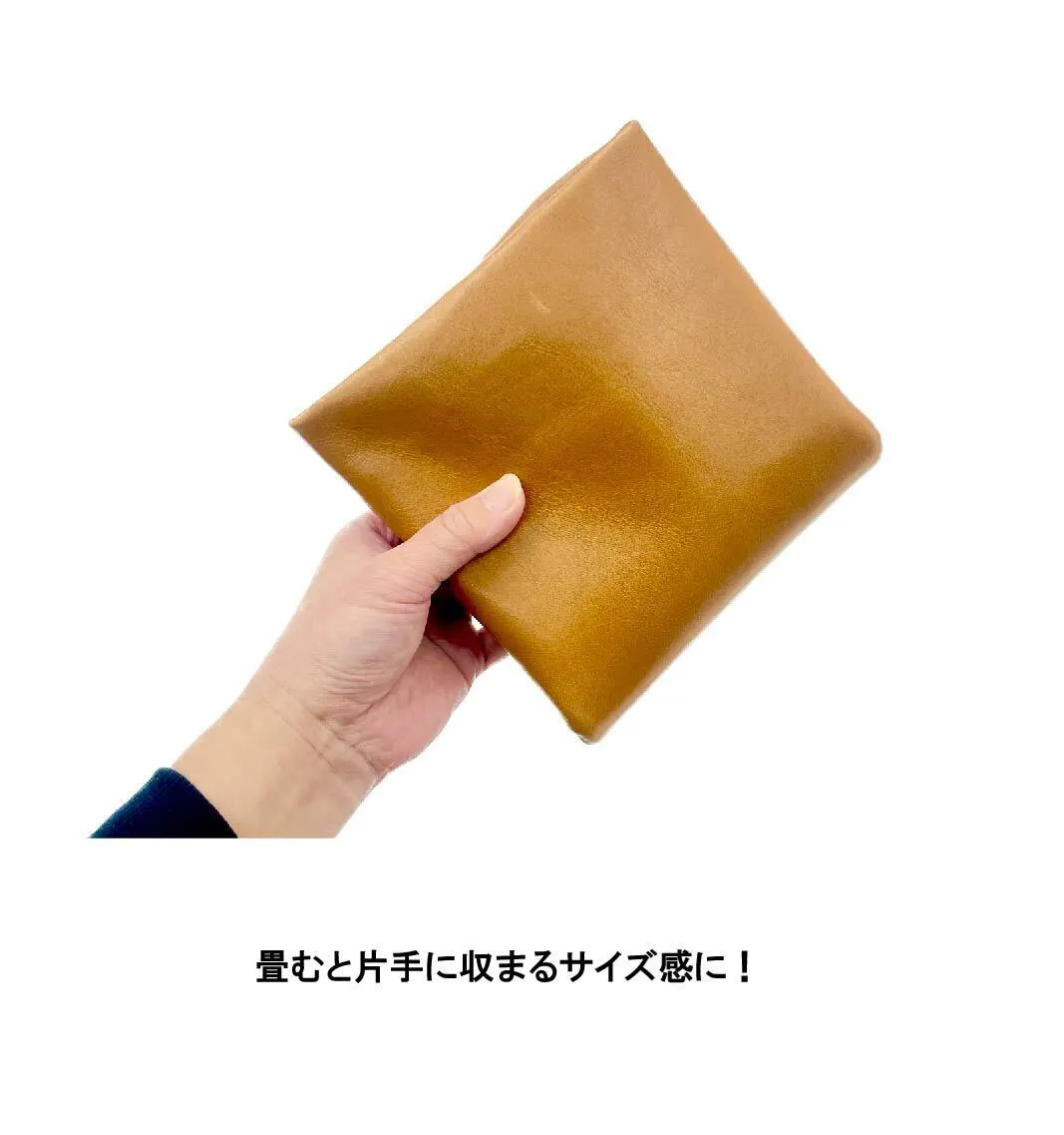 ※畳んだ状態のサイズ▶タテ約16cm×ヨコ約16cm×厚み約3cm(革の厚みは均一ではないため多少異なります。)