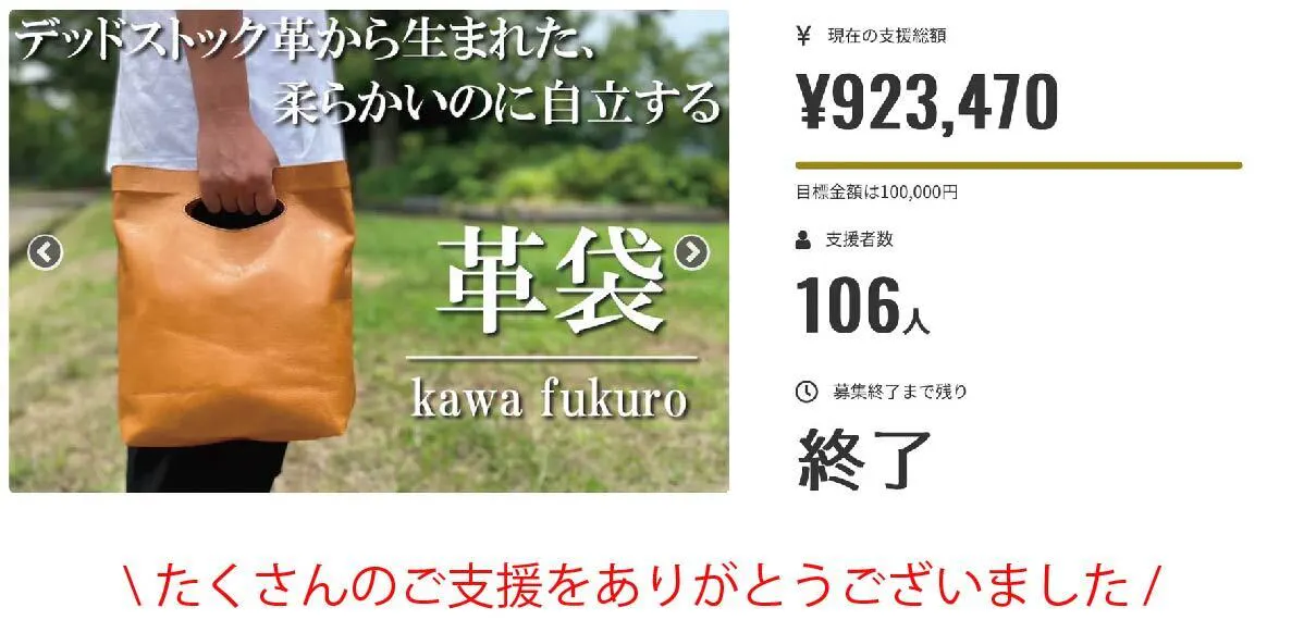 前回の革袋ーKawaFukuroープロジェクトでは、たくさんのご支援を本当にありがとうございました。