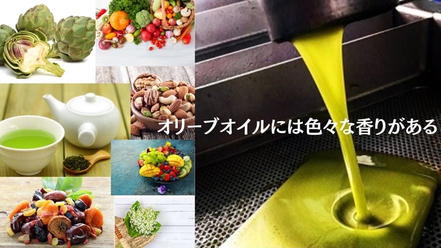 オリーブの実を絞っただけの油オリーブオイルには、色々な香りがあります。草や野菜、ハーブやナッツ、フルーツ、時にはお花やハチミツのような香りまで。
