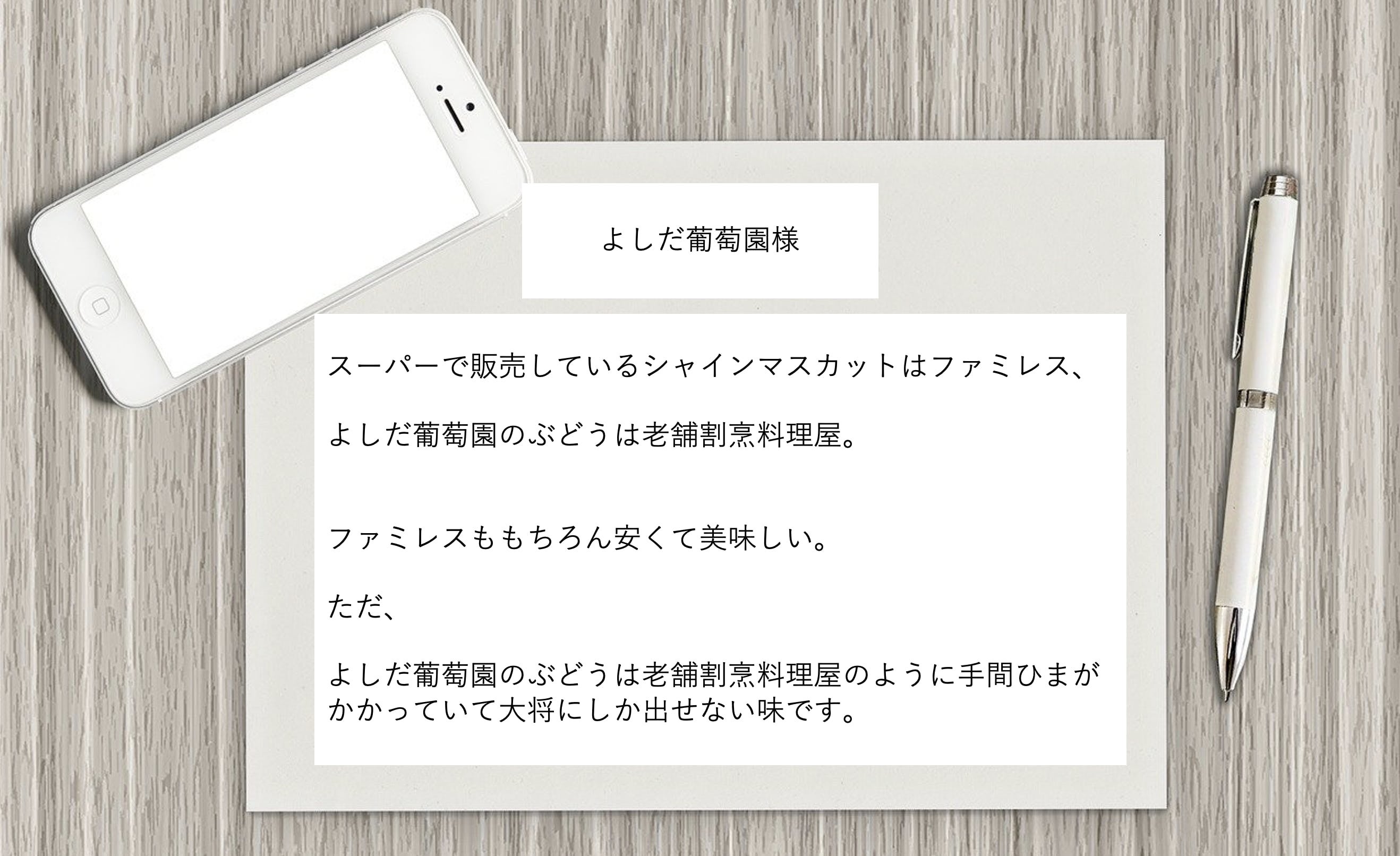『よしだ葡萄園の葡萄しか食べられない』『毎年よしだ葡萄園のぶどうを食べるのが楽しみ』