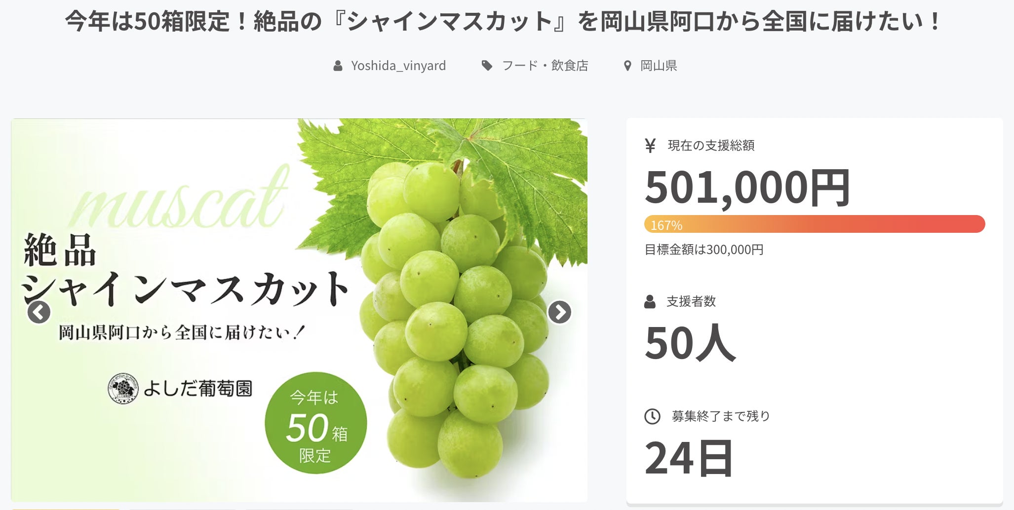 本日からシャインマスカットのクラウドファンディングがスタートしました!