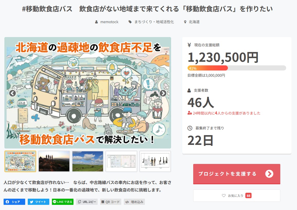11月1日に開始した移動飲食店バスの導入を目指すクラウドファンディングは、