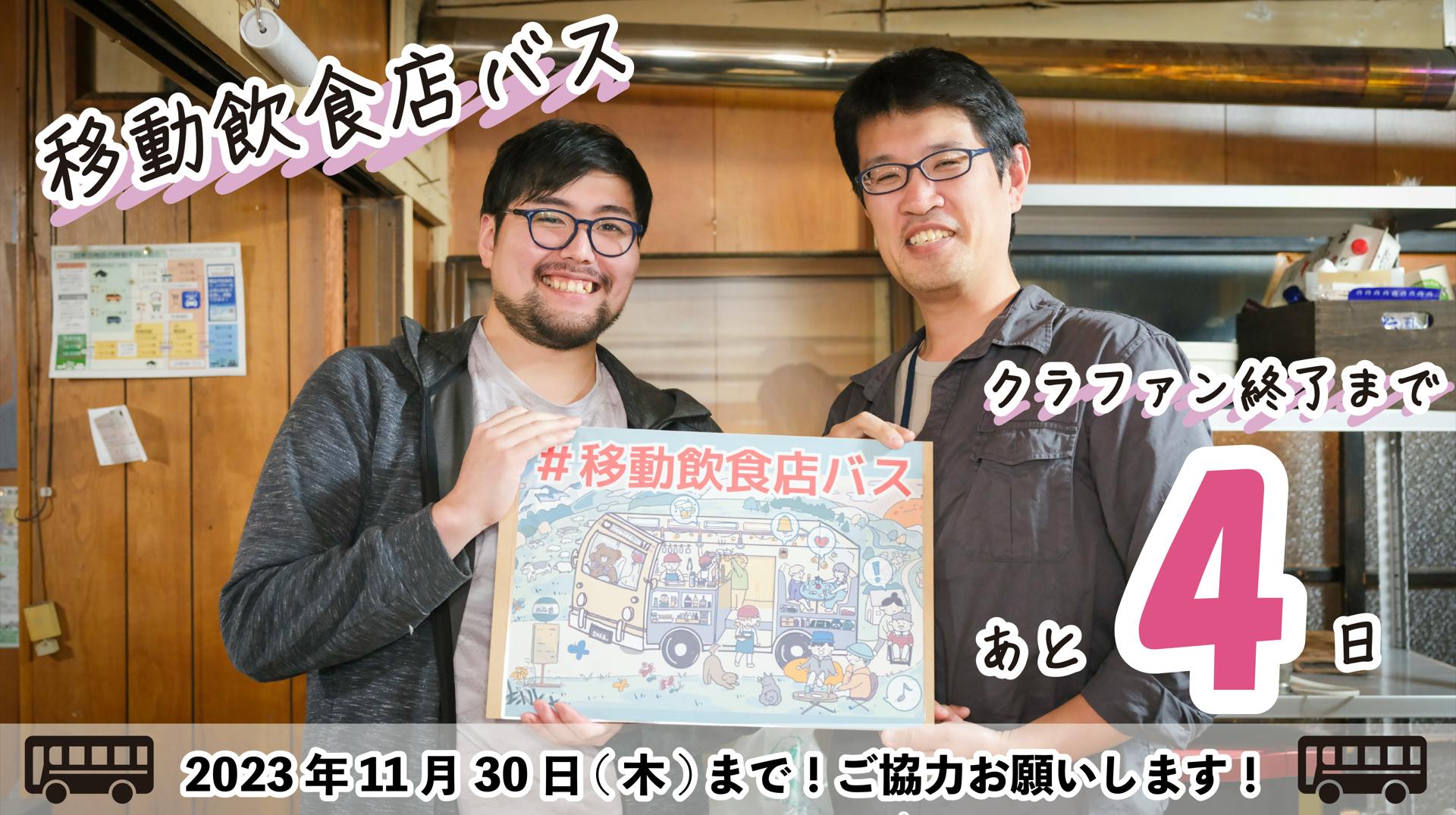 移動飲食店バスの導入に向けたクラウドファンディングは、