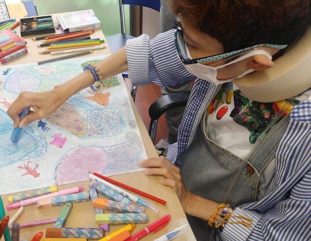 そんな夢輝がライフワークとしているのが、パステル画を始めとするアート制作。 「福祉パステルアートインストラクター」の資格を持ち、「アートを通じ、世界を平和にしたい」という夢を掲げながら闘病の合間に制作に勤しんでいます。思うように動かない指先を精一杯動かして作品を紡ぐ姿は、たびたびメディアにも取り上げられています。