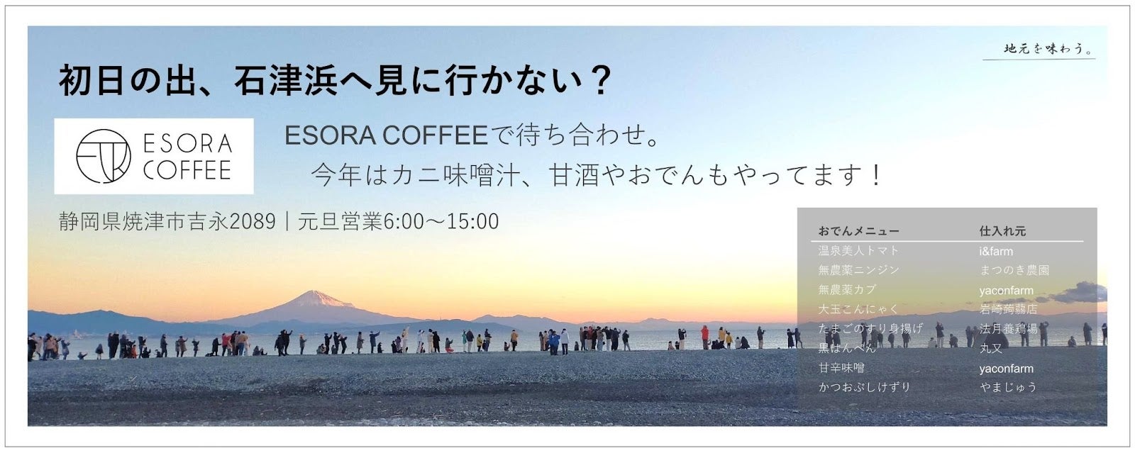 焼津市石津浜近くに店を構える、ESORA COFFEE さんの元旦営業にお邪魔し