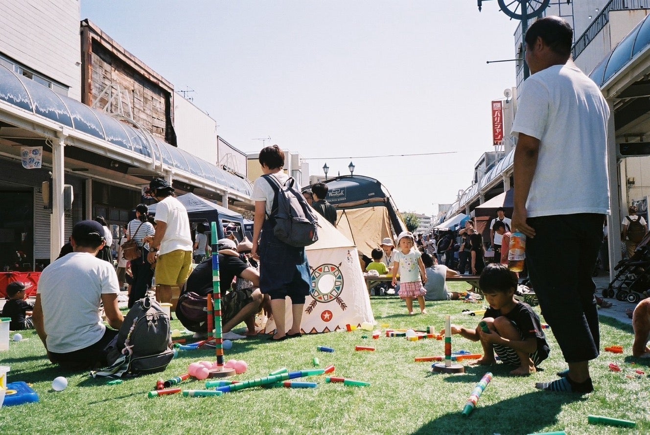 くりさんちが出来てから初めて参加した「アソビバ」ですかね。アソビバは商店街を一部歩行者天国にして人口芝生を敷き、子どもがはしゃぎまわりやすい場をつくる(一社)トリナス(代表土肥からは本文内に応援メッセージをもらっています)主催のイベントですが、商店街にこんなにも人が来るんだな、と。