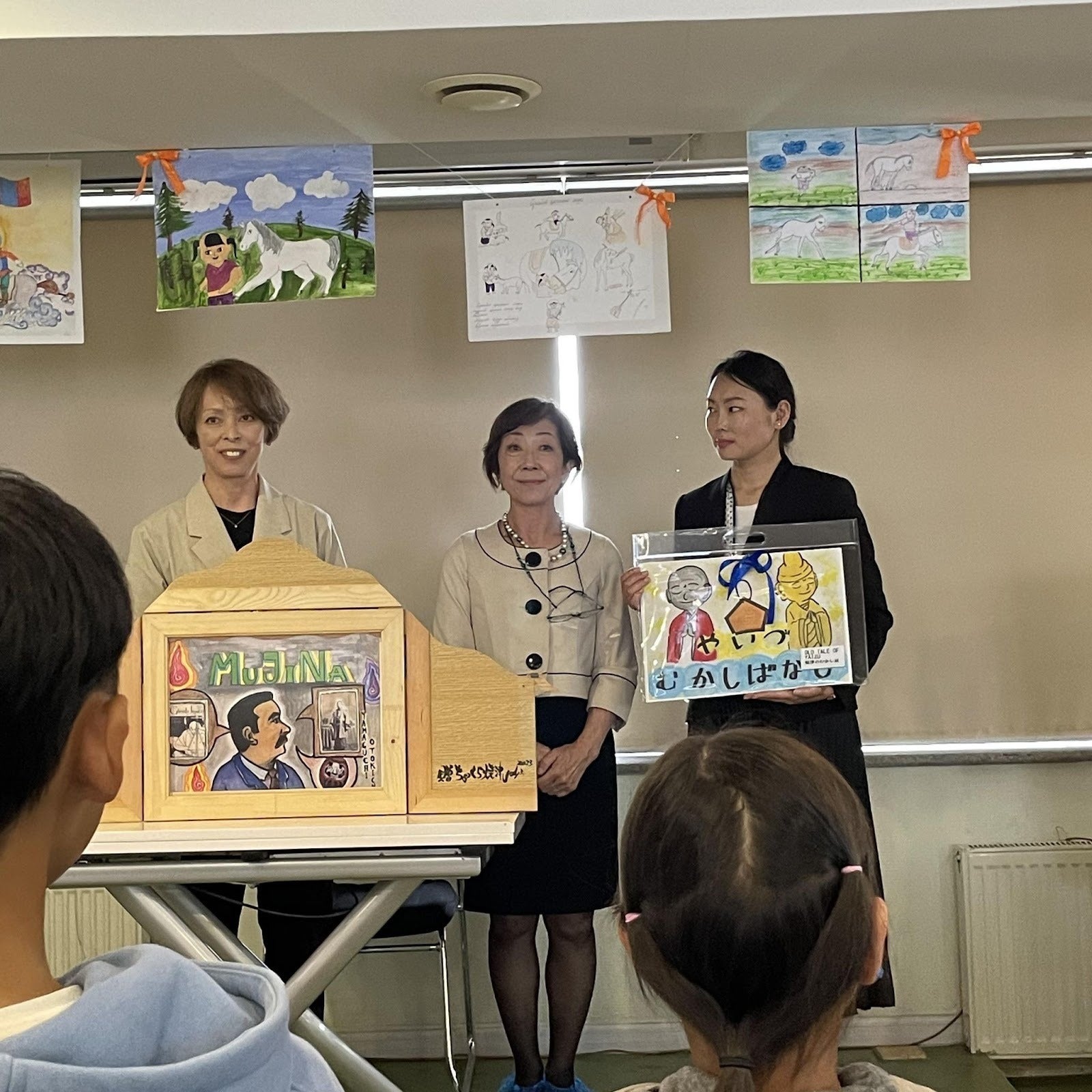 焼津市ではもともと市役所にモンゴル国出身の方がいて、さらに2020年のオリンピック・パラリンピックを機に焼津がモンゴル国のホストタウンとなり、市民間での交流も推進し始めました。そこでスポーツに限らず交流をしていきたいということで、紙芝居の文化紹介が提案され、モンゴル国友好協会の会員らが現地で紙芝居を披露した上でそのキットを届けるという運びになりました。私は当時会員ではなくて、モンゴル国は正直ノーマークでしたが笑、渡航メンバーの方に誘われて会員となり、ツアーへ参加しました。
