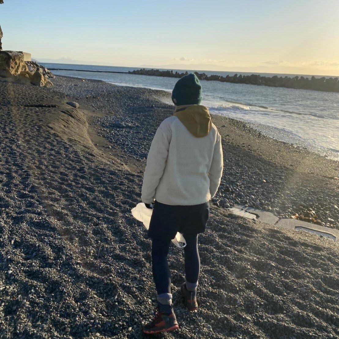 最後にビーチクリーン、すなわち海辺のゴミ拾い活動もやっています。私にとって海は、子どもの頃は遊び場で、高校生の頃はサーフィン、現在はSUPと、ずっとお世話になっている存在です。だから、「ありがとう」の気持ちを込めて、ゴミ拾いを始めました。ゴミ拾いを始めてからは、ゴミや漂流物を活用した作品も生まれるようになったので、アートの面でも海から恩恵を受けています。そのように、私の表現の世界を広げてくれた海には本当に感謝しかないです。現在は、友人5人で浜当目の海岸をゆるく清掃していますが、自分のやりたい時にやりたい場所で、無理なく気軽に習慣として続けていきたいですね。