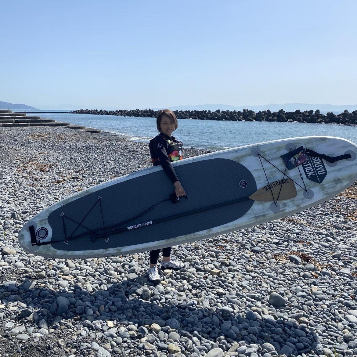 スポーツも現役なつぐみさん!浜当目にてSUP。