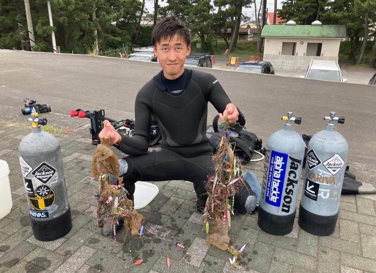 私はダイビングや釣りが好きです。でもご存知の通り、海のゴミ問題が酷いのが実感できてしまうから悲しくて。そこで、水中から拾ってきた釣り具を販売して、それを活動費にして循環させたらどうか?と考えたわけです。