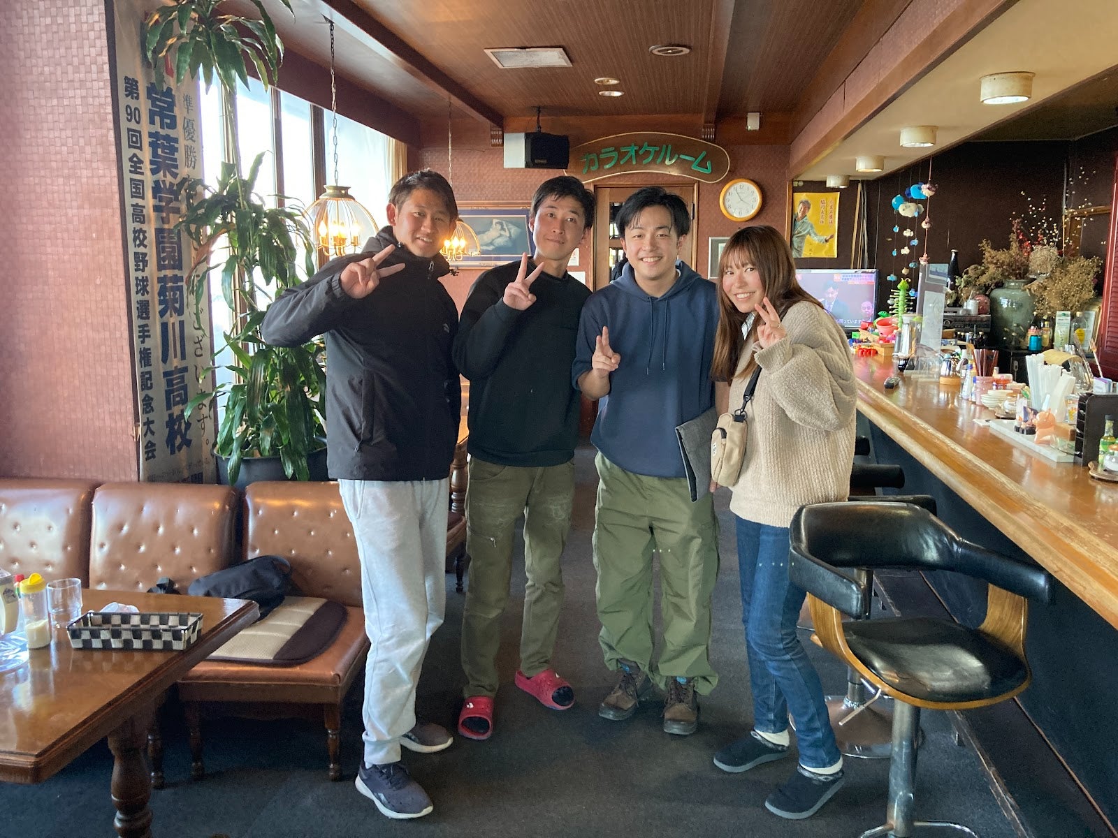 近くのカフェにて。左からこーちゃん、どいくん、かい、あいちゃん。