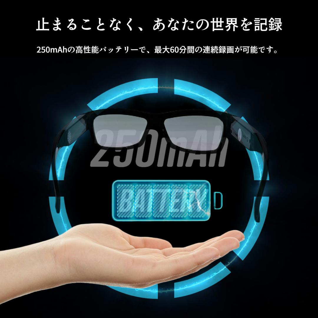 4Kメガネ型ウェラブルカメラに組み込まれた250mAhの高性能ポリマーリチウムバッテリーは、あなたのすべての貴重な瞬間を逃さないための、強力なパートナーです。