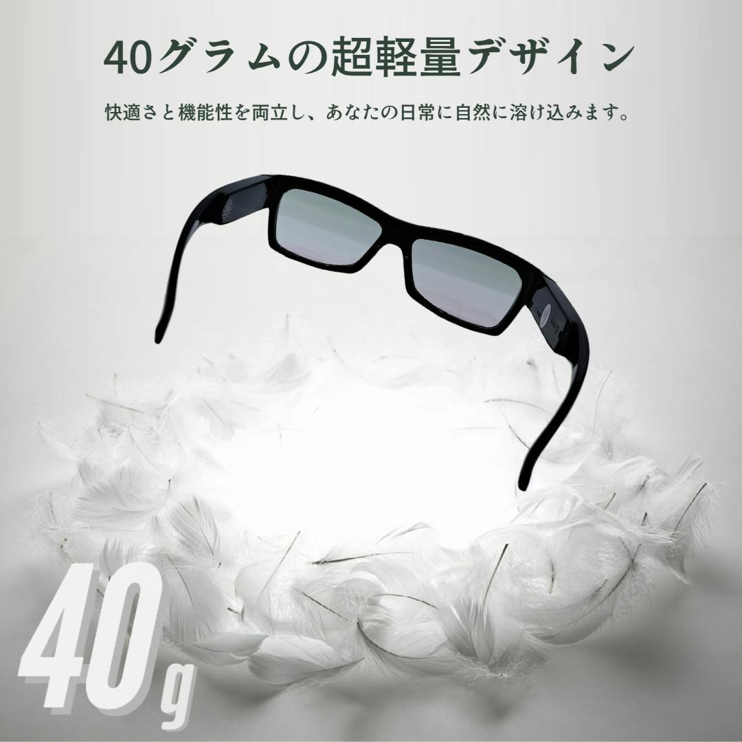 この4Kメガネ型ウェラブルカメラの一つの大きな魅力はその超軽量設計です。なんと、重さはわずか40g。これなら、長時間の使用でも疲れることはありません。