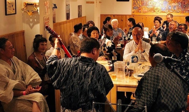 そう言って流しをスタートすると、腕を組んだ男性が、歌えるもんなら歌ってみろとでも言うように大きく声を上げました。